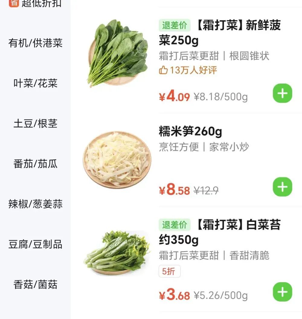 电商平台的霜打菜(图片开始:某电商平台)
