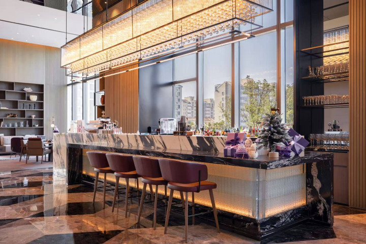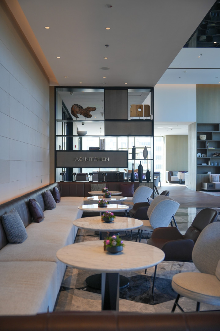 最绝顶的是大堂的AC咖啡吧,白日是飘着咖啡香的失业空间,晚上则化身为氛围松驰的酒吧,这种切换相配意念念。前台漂亮的姑娘还特意送了咱们一张咖啡酒吧体验券,可去品味咖啡或鸡尾酒。