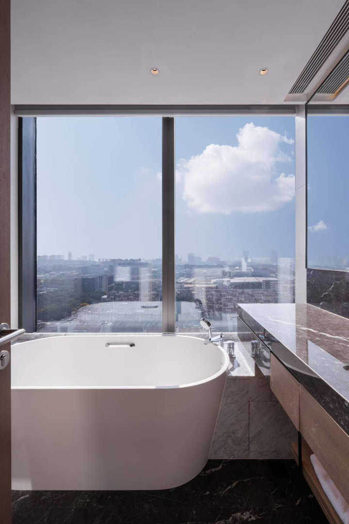 此次酒店给我安排了景不雅相配棒的房间,可远不雅金鸡湖城市景不雅,“东方之门”混沌可见。客房继续了合座贪图的勤俭作风,以轻柔的中性颜色为主,让东谈主嗅觉很减轻。房间法式很贴心,配备了空气净化器;浴室作念了干湿辨别。