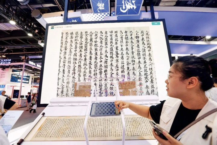 2024年7月6日,在2024世界东谈主工智能大会期间,职责主谈主员先容AIGC古籍确立时间。图/中新